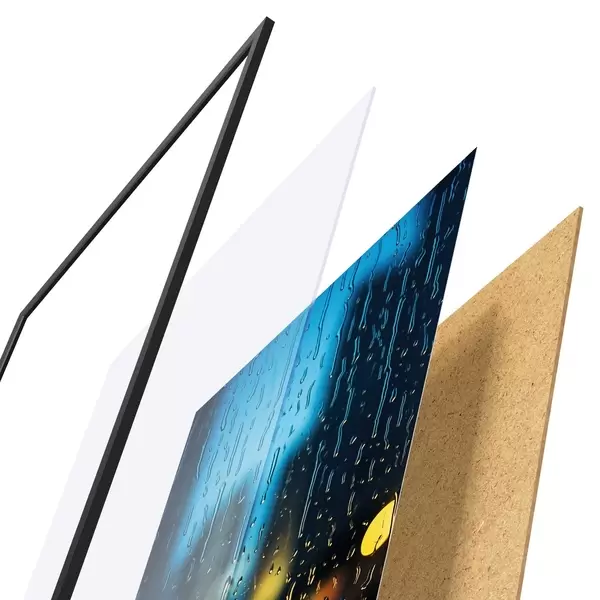 Plakāts sastāv no rāmja, pleksstikla, iespiestā attēla un skaidu plātnes pamatnes. Plakātu var uzreiz piekarināt pie sienas, pateicoties aizmugurē esošajiem stiprinājumiem.