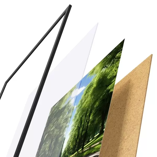 Plakāts sastāv no rāmja, pleksstikla, iespiestā attēla un skaidu plātnes pamatnes. Plakātu var uzreiz piekarināt pie sienas, pateicoties aizmugurē esošajiem stiprinājumiem.