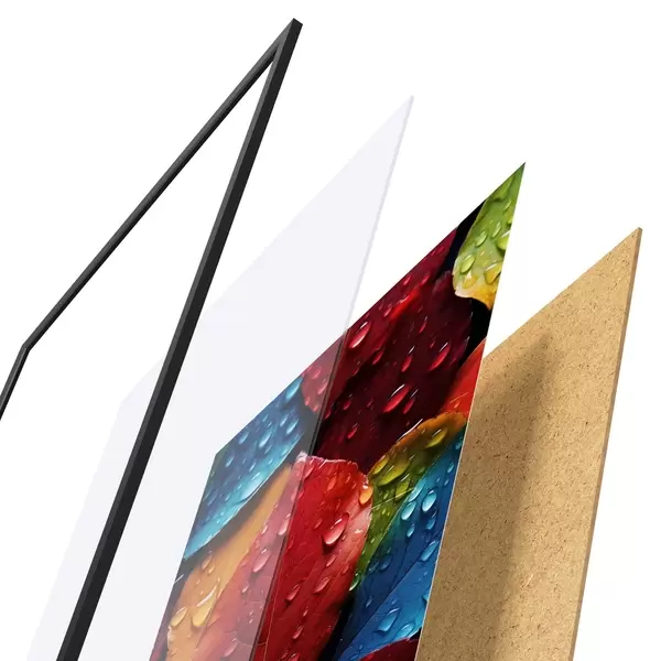 Plakāts sastāv no rāmja, pleksstikla, iespiestā attēla un skaidu plātnes pamatnes. Plakātu var uzreiz piekarināt pie sienas, pateicoties aizmugurē esošajiem stiprinājumiem.