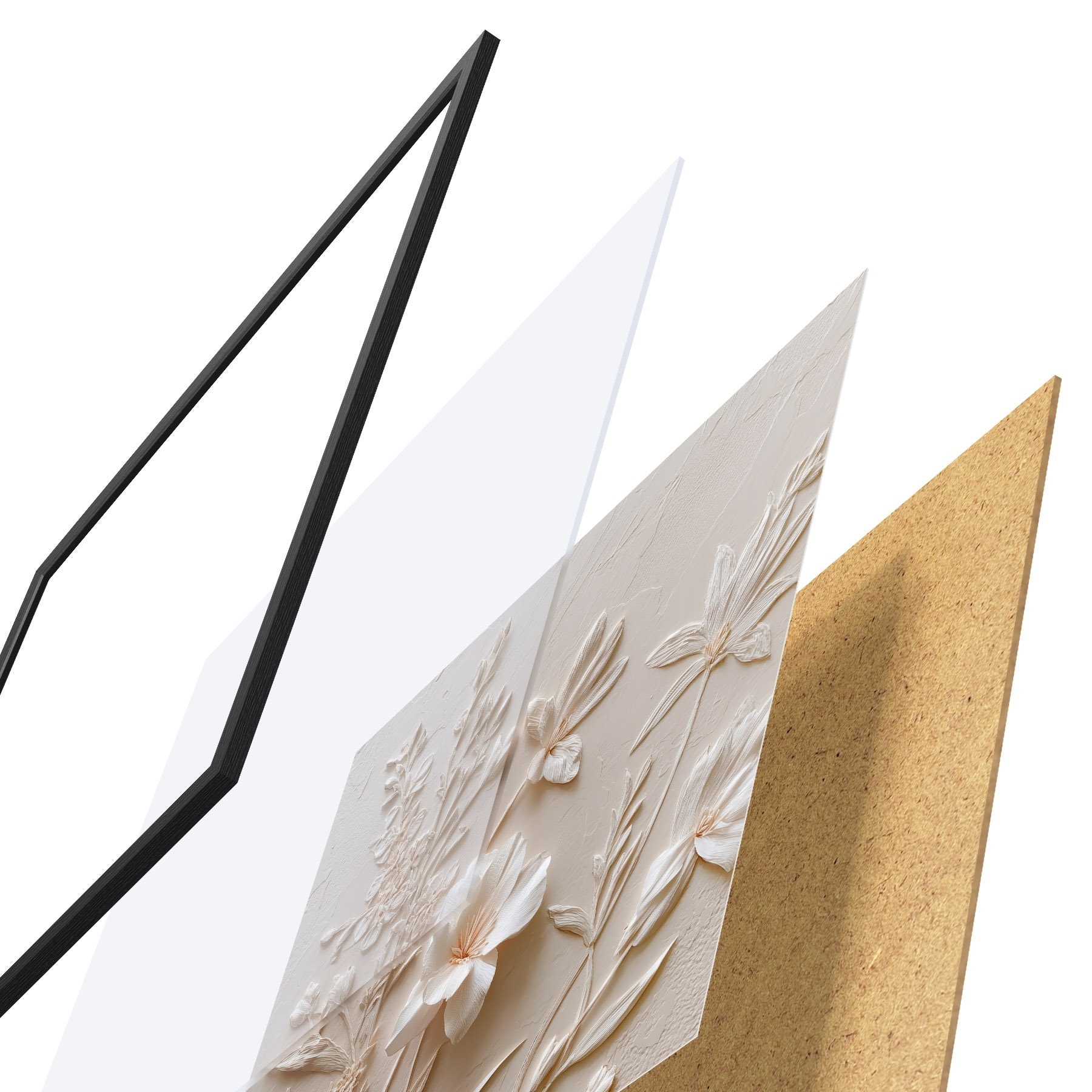 Plakāts sastāv no rāmja, pleksstikla, iespiestā attēla un skaidu plātnes pamatnes. Plakātu var uzreiz piekarināt pie sienas, pateicoties aizmugurē esošajiem stiprinājumiem.