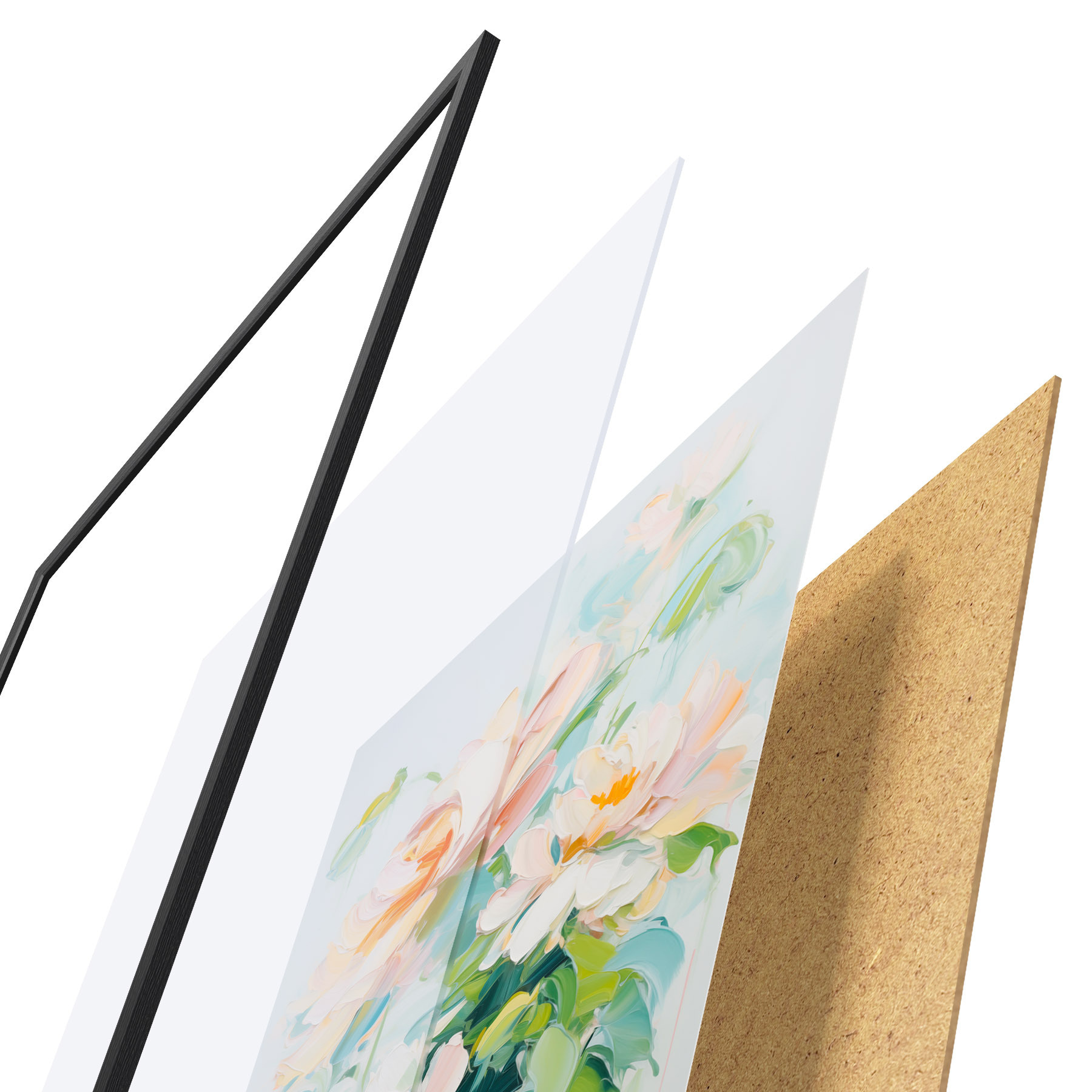 Plakāts sastāv no rāmja, pleksstikla, iespiestā attēla un skaidu plātnes pamatnes. Plakātu var uzreiz piekarināt pie sienas, pateicoties aizmugurē esošajiem stiprinājumiem.