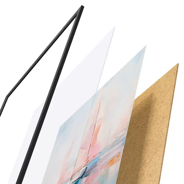 Plakāts sastāv no rāmja, pleksstikla, iespiestā attēla un skaidu plātnes pamatnes. Plakātu var uzreiz piekarināt pie sienas, pateicoties aizmugurē esošajiem stiprinājumiem.