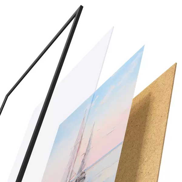 Plakāts sastāv no rāmja, pleksstikla, iespiestā attēla un skaidu plātnes pamatnes. Plakātu var uzreiz piekarināt pie sienas, pateicoties aizmugurē esošajiem stiprinājumiem.