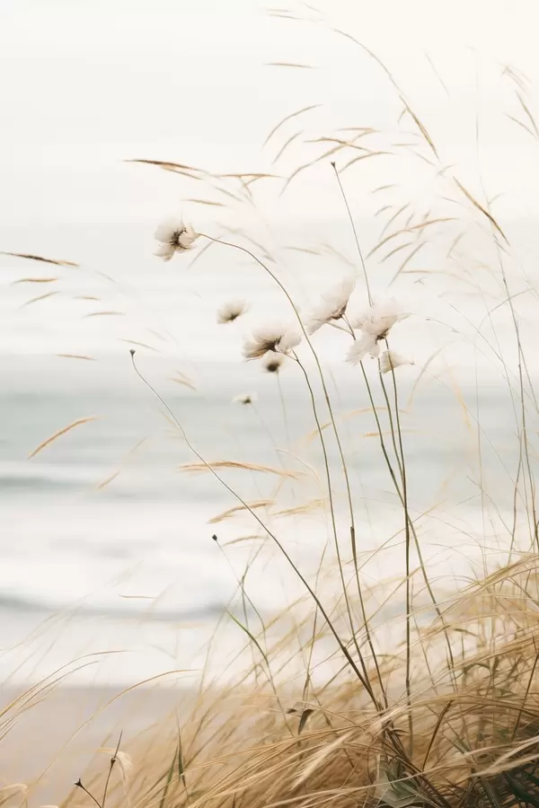 SākumlapaPlakātu katalogsPlakāti dabaPlakāts Dažas kokvilnas zāles un citas sausas zāles izplūdušas jūras priekšā, maiga un pieklusināta krāsu palete Nr f45562