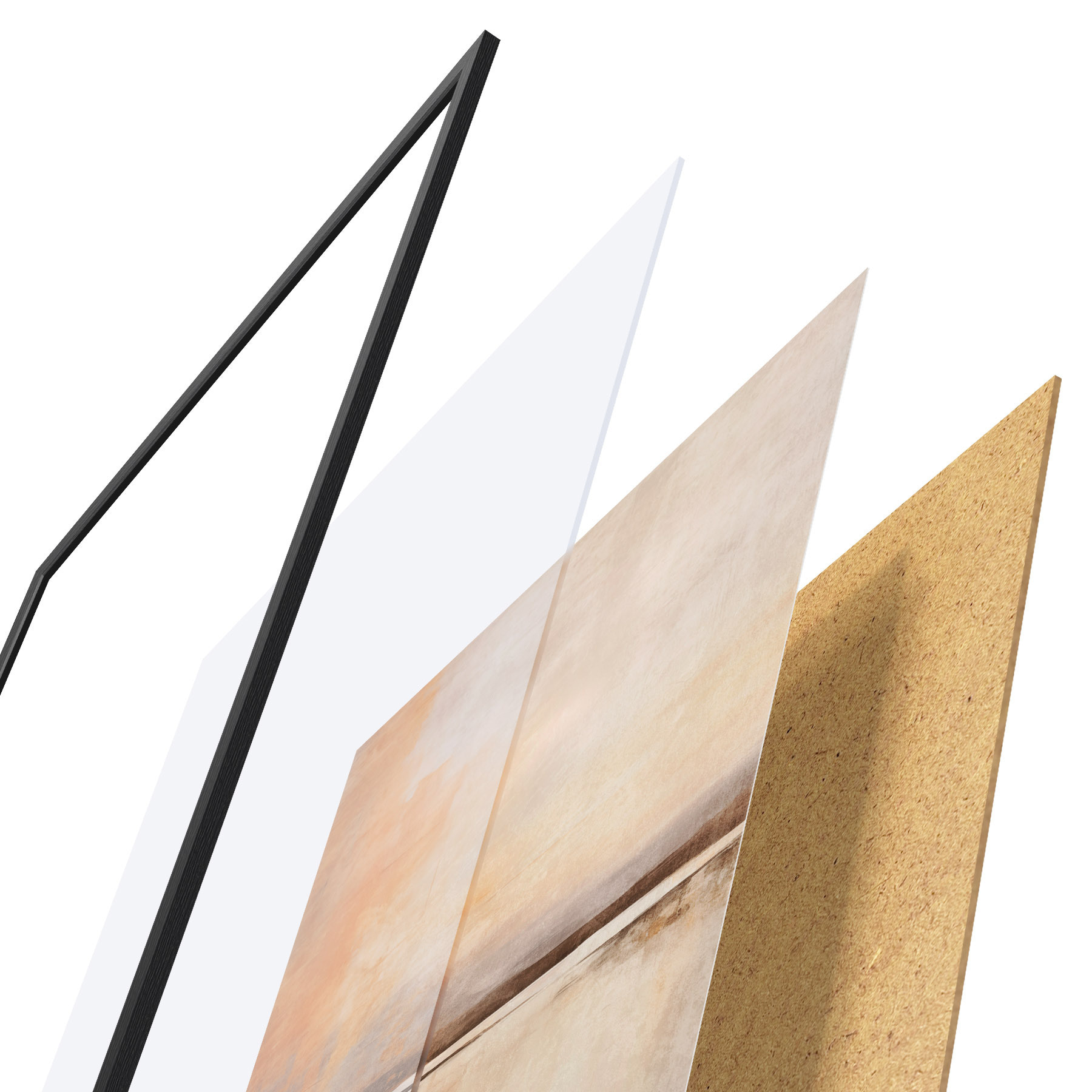 Plakāts sastāv no rāmja, pleksstikla, iespiestā attēla un skaidu plātnes pamatnes. Plakātu var uzreiz piekarināt pie sienas, pateicoties aizmugurē esošajiem stiprinājumiem.