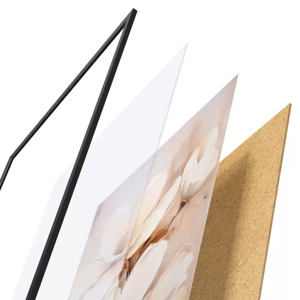 Plakāts sastāv no rāmja, pleksstikla, iespiestā attēla un skaidu plātnes pamatnes. Plakātu var uzreiz piekarināt pie sienas, pateicoties aizmugurē esošajiem stiprinājumiem.