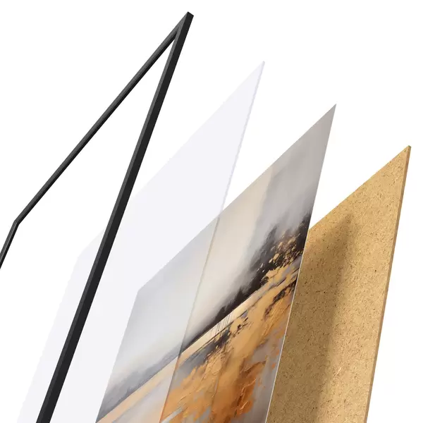 Plakāts sastāv no rāmja, pleksstikla, iespiestā attēla un skaidu plātnes pamatnes. Plakātu var uzreiz piekarināt pie sienas, pateicoties aizmugurē esošajiem stiprinājumiem.