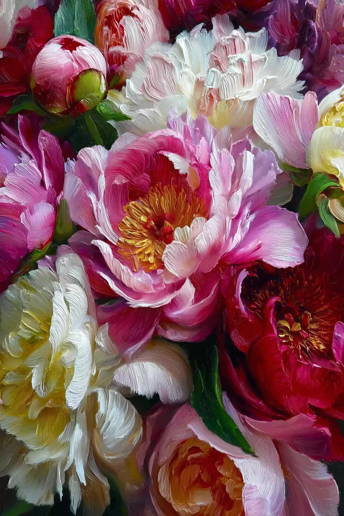 Plakāts Sulīgas peonijas impasto tehnikā Nr f45595