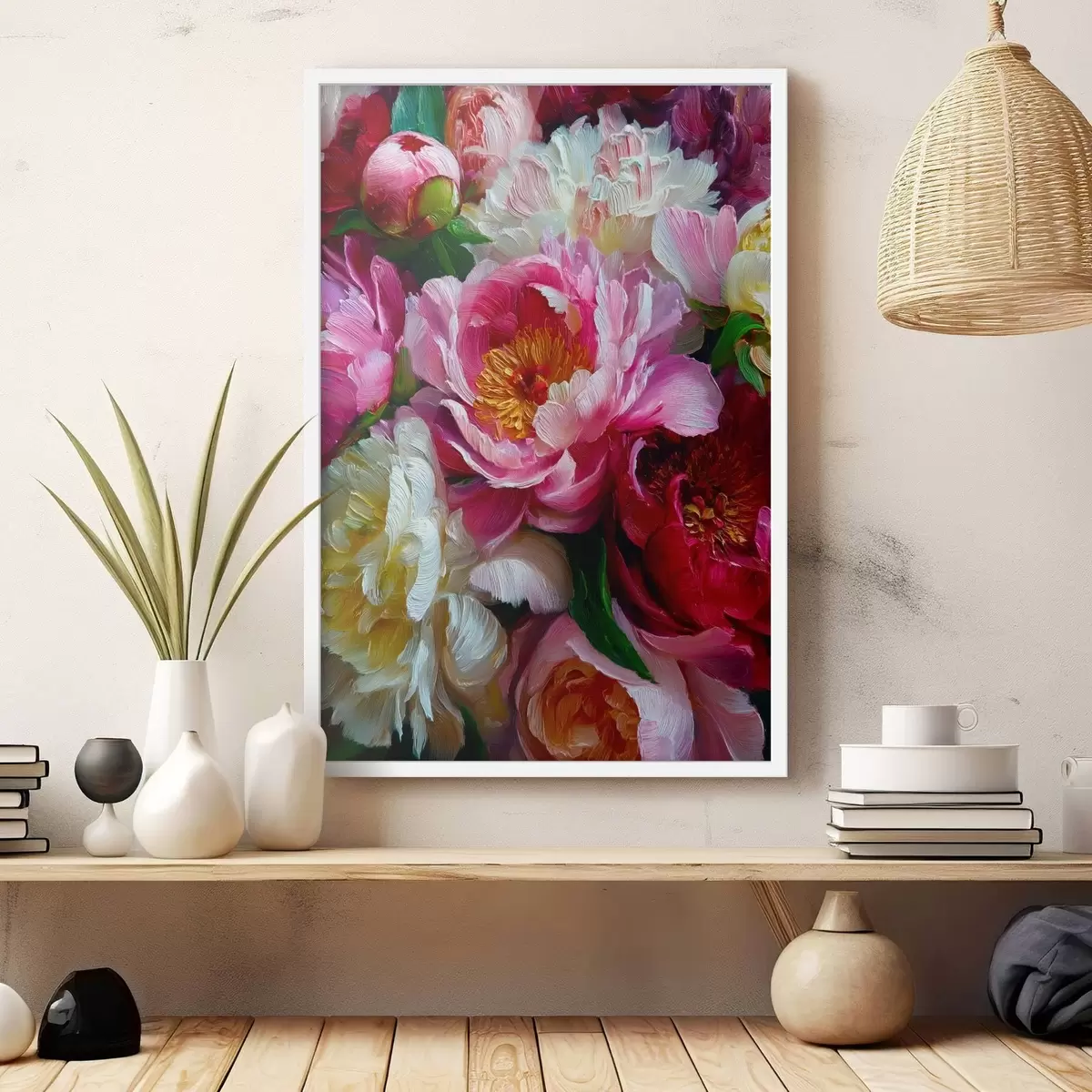Plakāts Sulīgas peonijas impasto tehnikā f45595