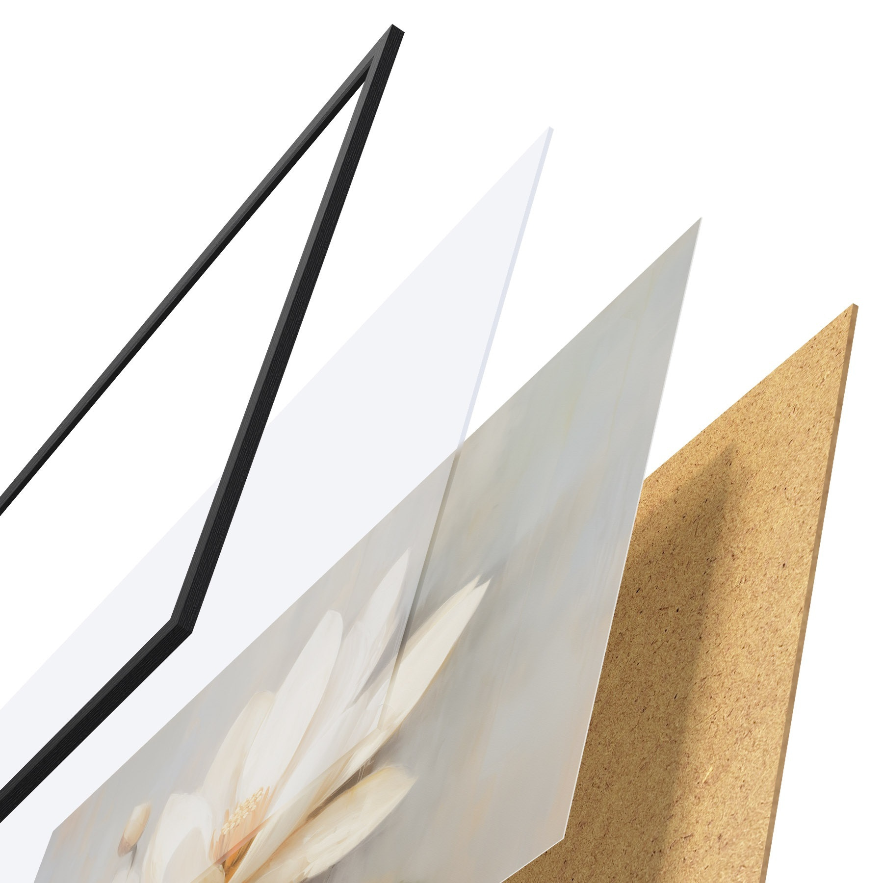 Plakāts sastāv no rāmja, pleksstikla, iespiestā attēla un skaidu plātnes pamatnes. Plakātu var uzreiz piekarināt pie sienas, pateicoties aizmugurē esošajiem stiprinājumiem.