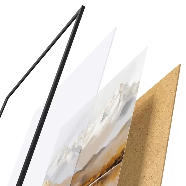Plakāts sastāv no rāmja, pleksstikla, iespiestā attēla un skaidu plātnes pamatnes. Plakātu var uzreiz piekarināt pie sienas, pateicoties aizmugurē esošajiem stiprinājumiem.