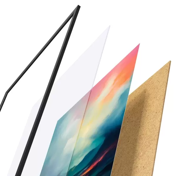 Plakāts sastāv no rāmja, pleksstikla, iespiestā attēla un skaidu plātnes pamatnes. Plakātu var uzreiz piekarināt pie sienas, pateicoties aizmugurē esošajiem stiprinājumiem.