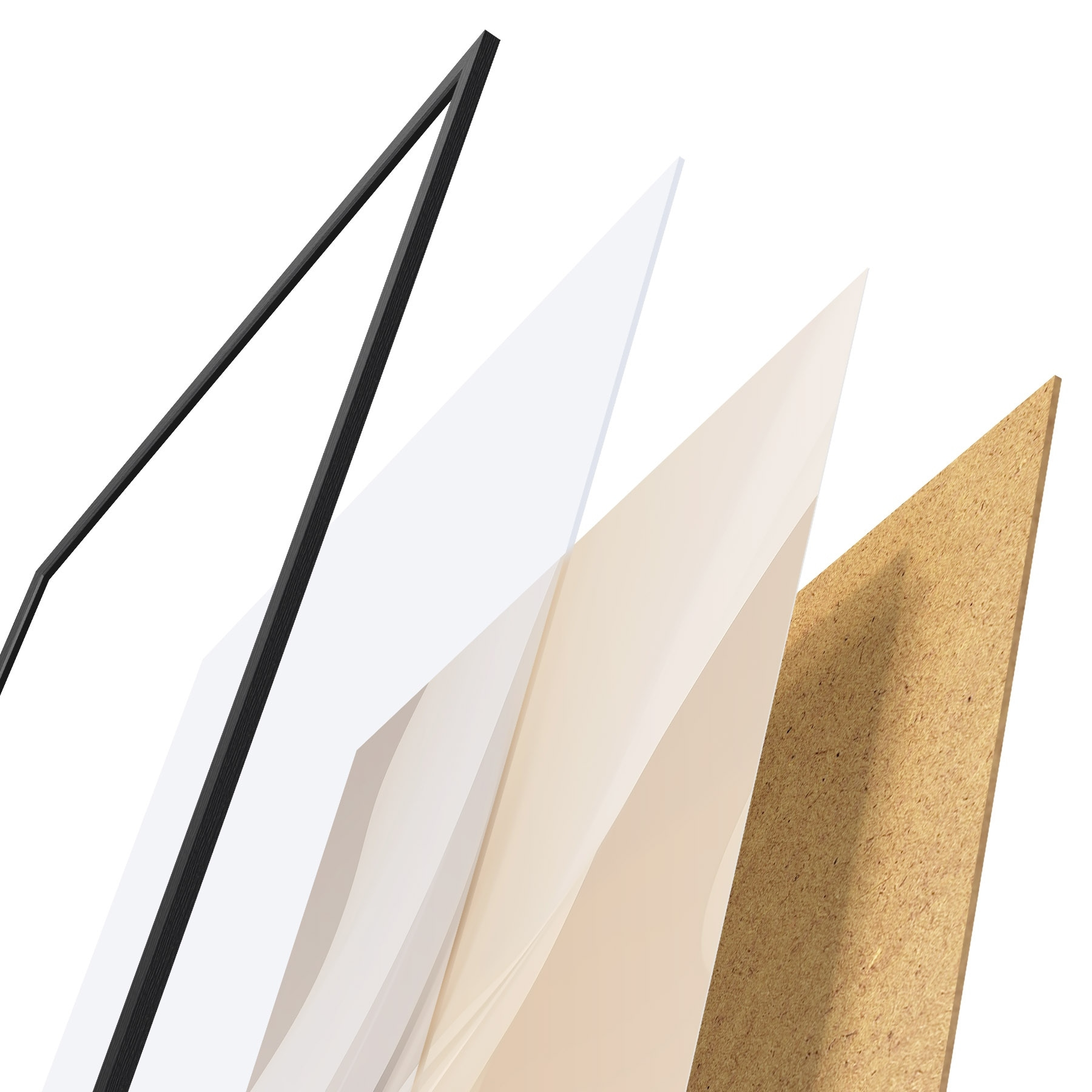 Plakāts sastāv no rāmja, pleksstikla, iespiestā attēla un skaidu plātnes pamatnes. Plakātu var uzreiz piekarināt pie sienas, pateicoties aizmugurē esošajiem stiprinājumiem.