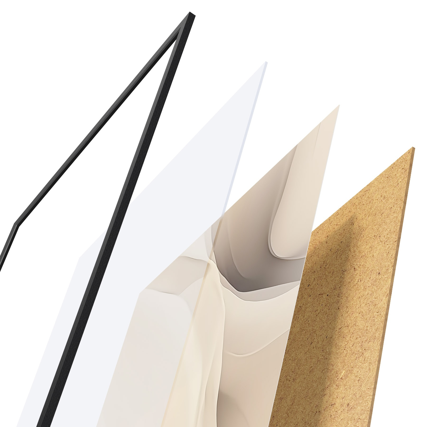 Plakāts sastāv no rāmja, pleksstikla, iespiestā attēla un skaidu plātnes pamatnes. Plakātu var uzreiz piekarināt pie sienas, pateicoties aizmugurē esošajiem stiprinājumiem.
