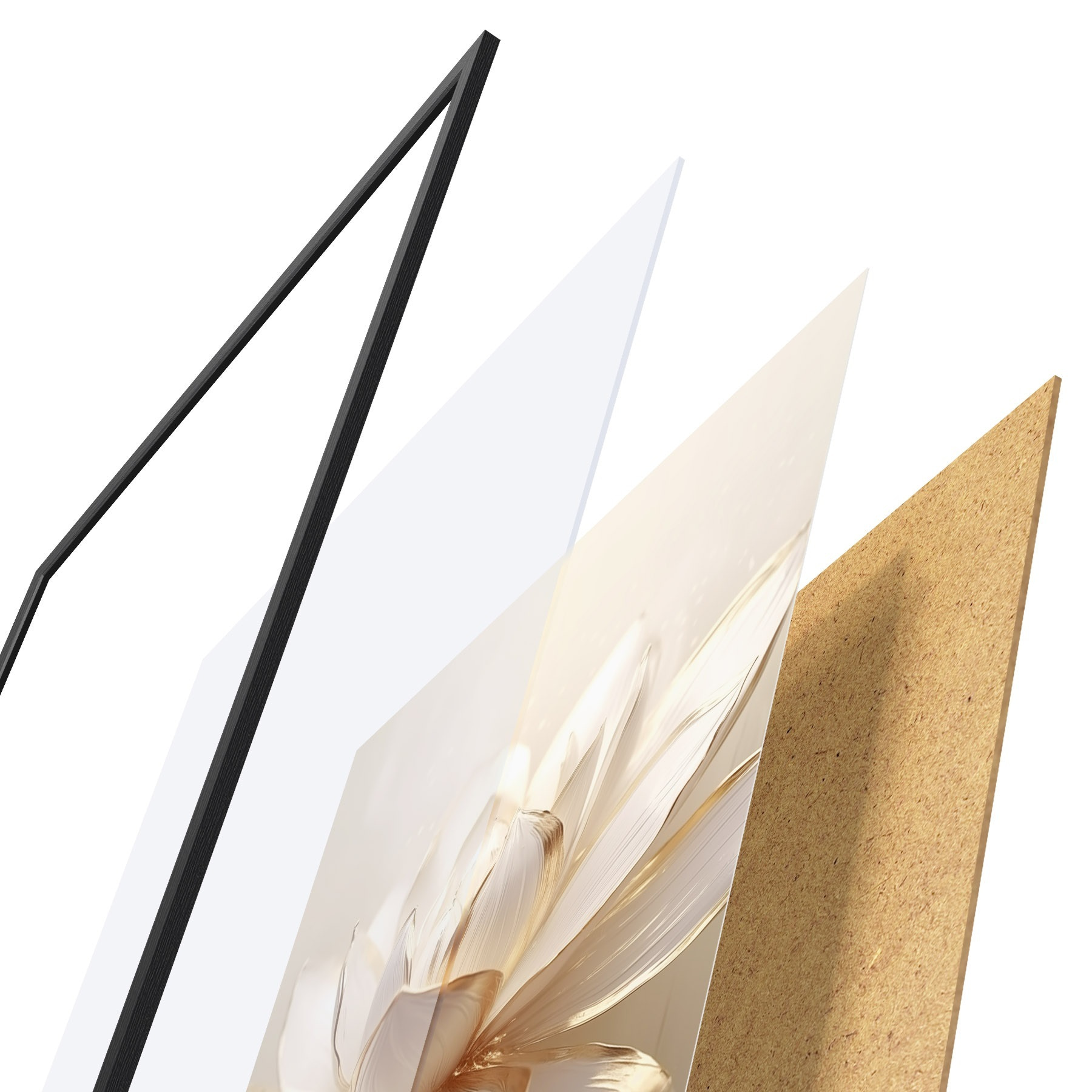 Plakāts sastāv no rāmja, pleksstikla, iespiestā attēla un skaidu plātnes pamatnes. Plakātu var uzreiz piekarināt pie sienas, pateicoties aizmugurē esošajiem stiprinājumiem.