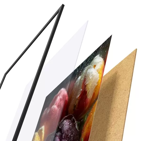 Plakāts sastāv no rāmja, pleksstikla, iespiestā attēla un skaidu plātnes pamatnes. Plakātu var uzreiz piekarināt pie sienas, pateicoties aizmugurē esošajiem stiprinājumiem.