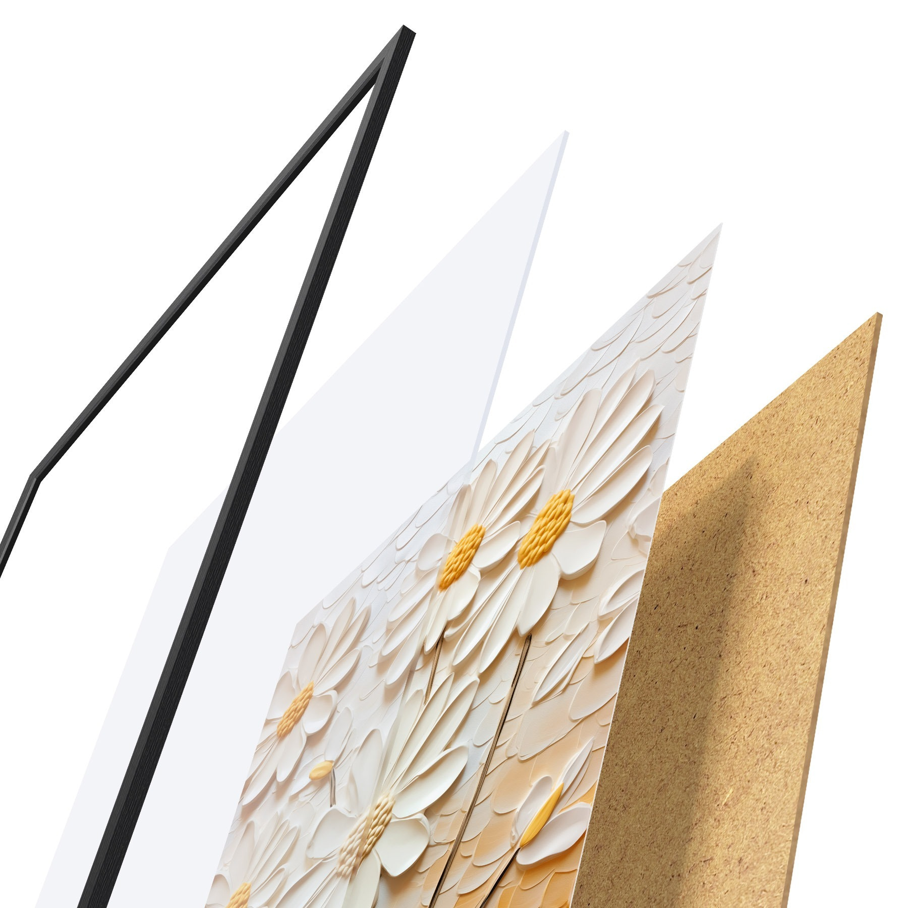 Plakāts sastāv no rāmja, pleksstikla, iespiestā attēla un skaidu plātnes pamatnes. Plakātu var uzreiz piekarināt pie sienas, pateicoties aizmugurē esošajiem stiprinājumiem.