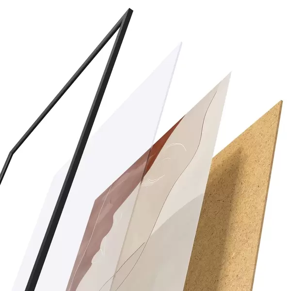 Plakāts sastāv no rāmja, pleksstikla, iespiestā attēla un skaidu plātnes pamatnes. Plakātu var uzreiz piekarināt pie sienas, pateicoties aizmugurē esošajiem stiprinājumiem.