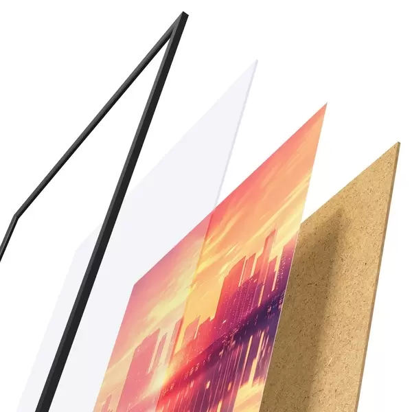 Plakāts sastāv no rāmja, pleksstikla, iespiestā attēla un skaidu plātnes pamatnes. Plakātu var uzreiz piekarināt pie sienas, pateicoties aizmugurē esošajiem stiprinājumiem.