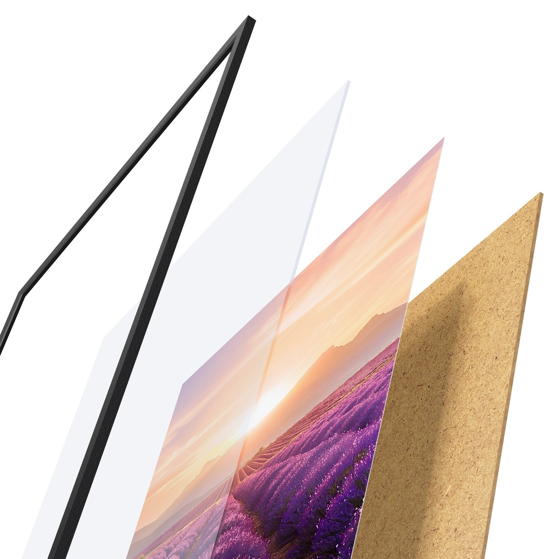 Plakāts sastāv no rāmja, pleksstikla, iespiestā attēla un skaidu plātnes pamatnes. Plakātu var uzreiz piekarināt pie sienas, pateicoties aizmugurē esošajiem stiprinājumiem.