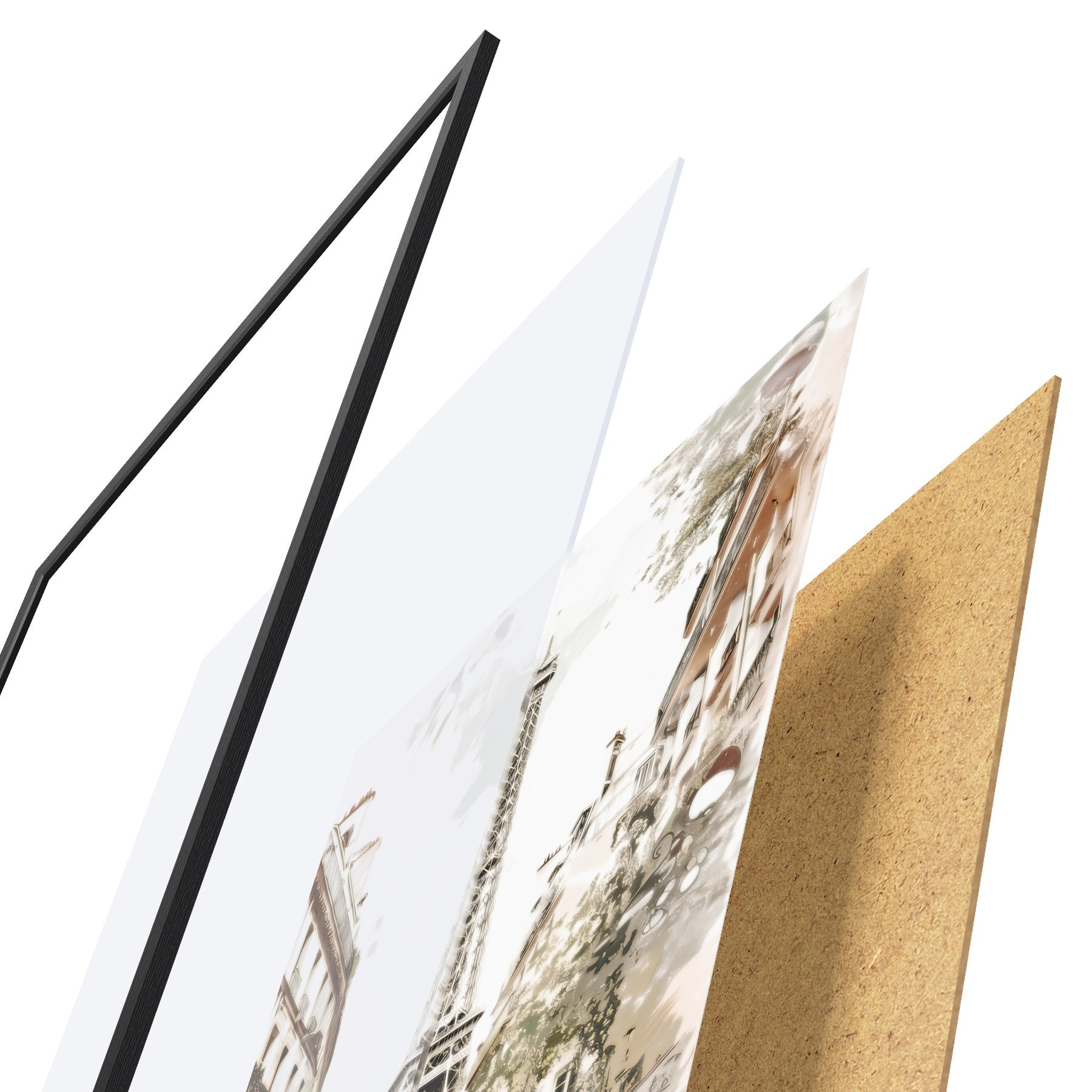 Plakāts sastāv no rāmja, pleksstikla, iespiestā attēla un skaidu plātnes pamatnes. Plakātu var uzreiz piekarināt pie sienas, pateicoties aizmugurē esošajiem stiprinājumiem.