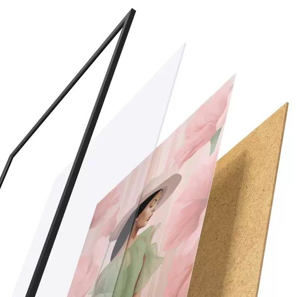 Plakāts sastāv no rāmja, pleksstikla, iespiestā attēla un skaidu plātnes pamatnes. Plakātu var uzreiz piekarināt pie sienas, pateicoties aizmugurē esošajiem stiprinājumiem.