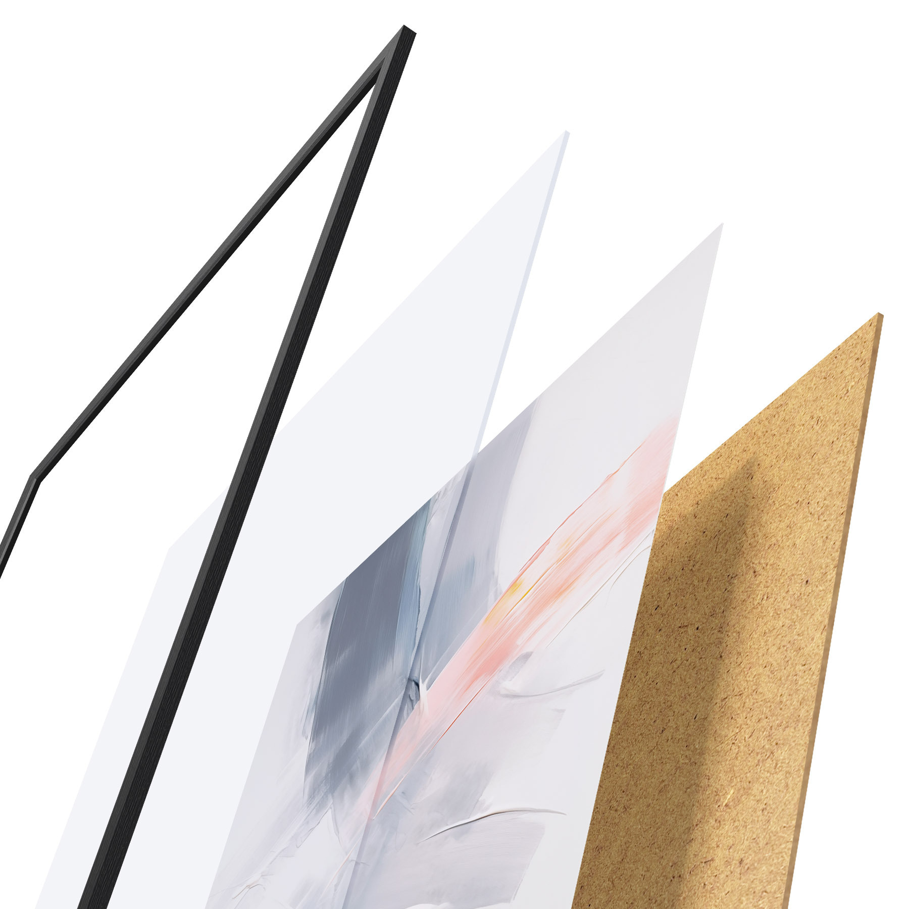 Plakāts sastāv no rāmja, pleksstikla, iespiestā attēla un skaidu plātnes pamatnes. Plakātu var uzreiz piekarināt pie sienas, pateicoties aizmugurē esošajiem stiprinājumiem.