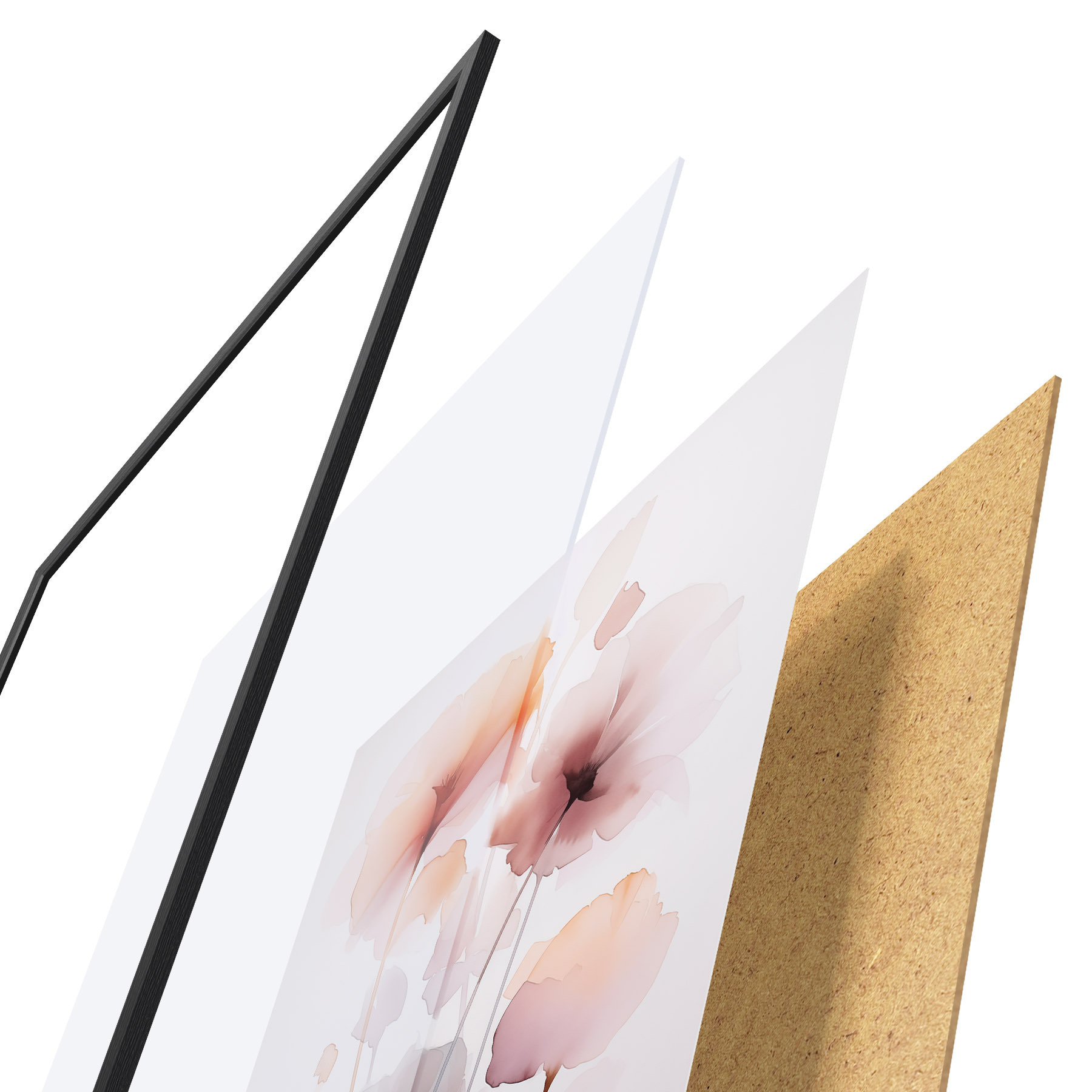 Plakāts sastāv no rāmja, pleksstikla, iespiestā attēla un skaidu plātnes pamatnes. Plakātu var uzreiz piekarināt pie sienas, pateicoties aizmugurē esošajiem stiprinājumiem.