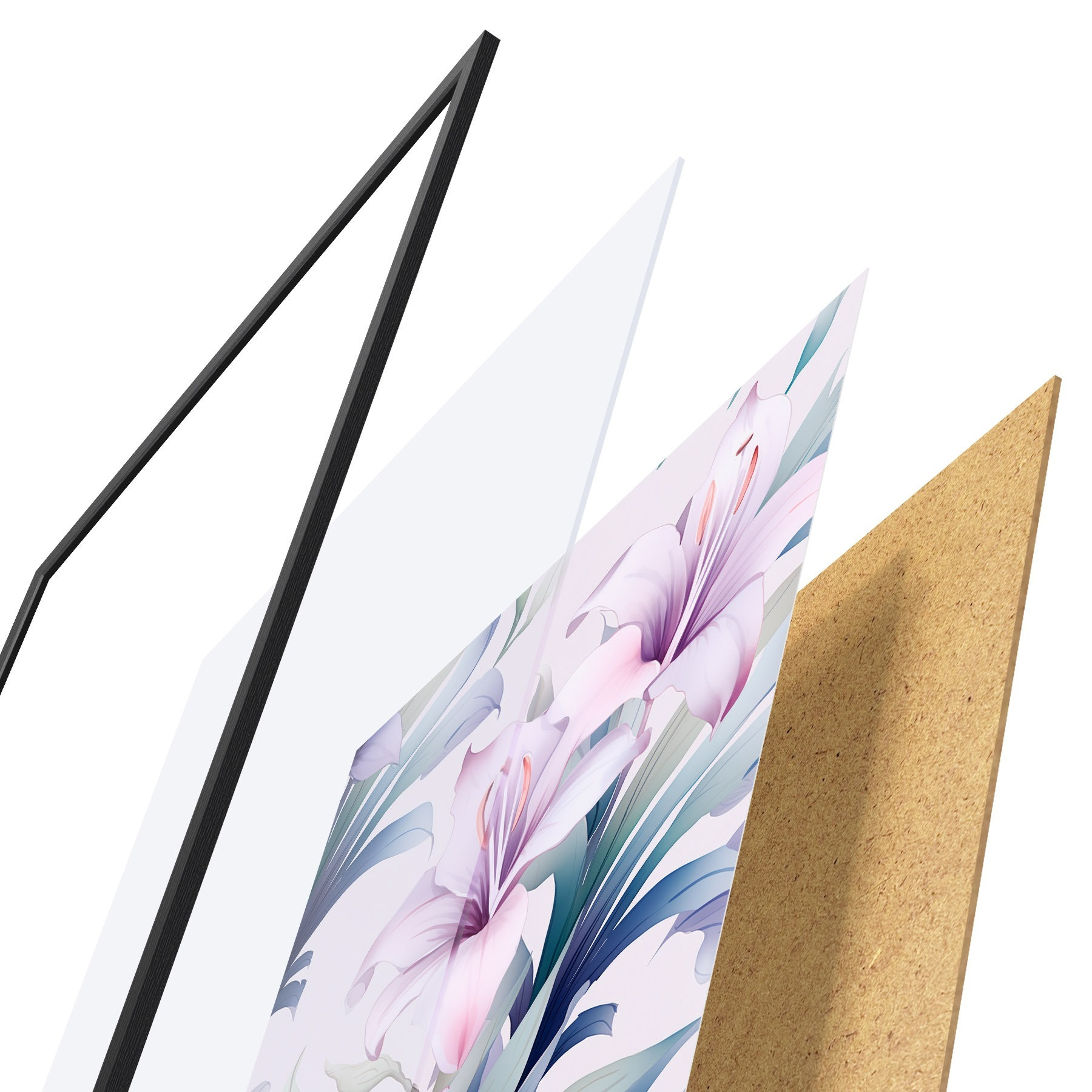 Plakāts sastāv no rāmja, pleksstikla, iespiestā attēla un skaidu plātnes pamatnes. Plakātu var uzreiz piekarināt pie sienas, pateicoties aizmugurē esošajiem stiprinājumiem.