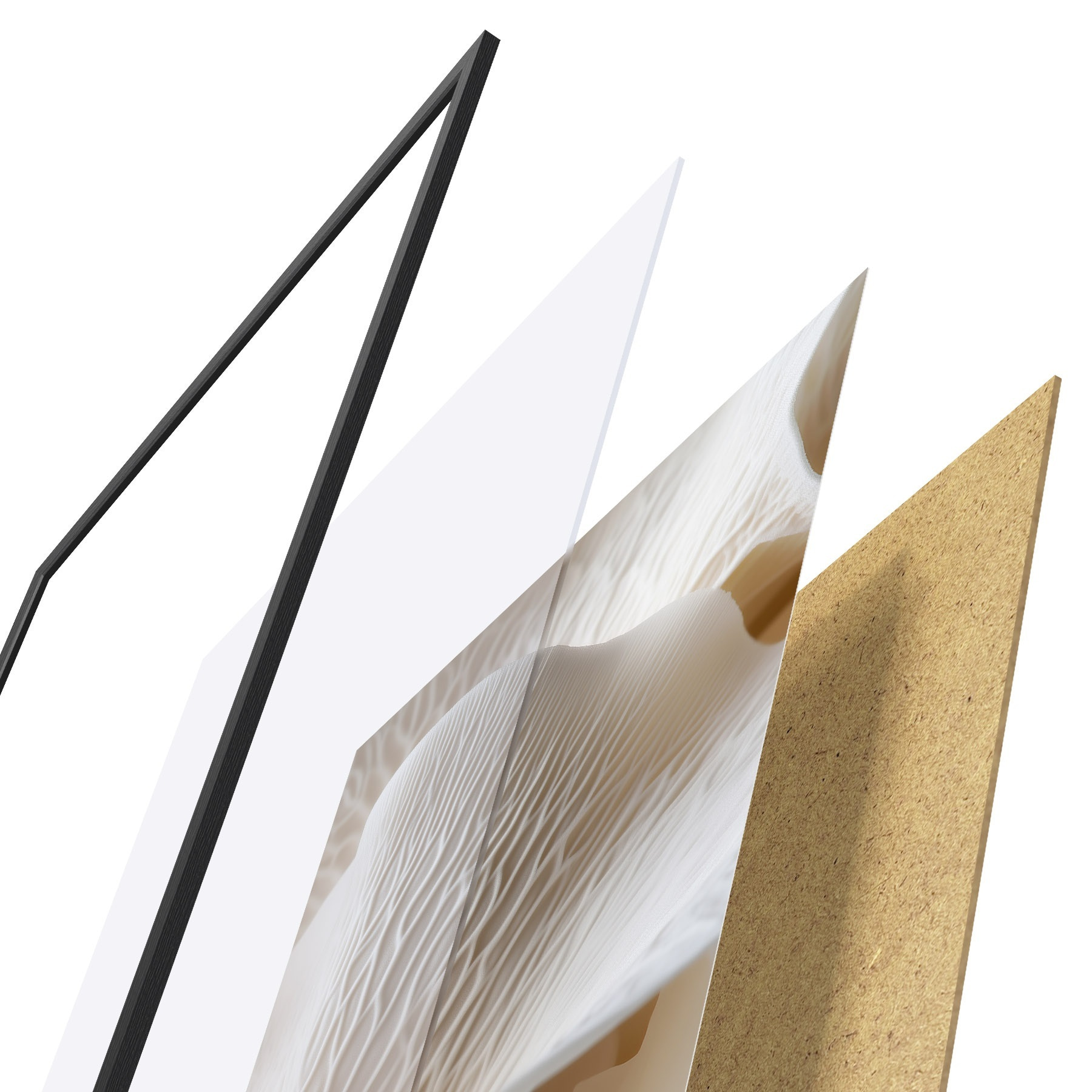 Plakāts sastāv no rāmja, pleksstikla, iespiestā attēla un skaidu plātnes pamatnes. Plakātu var uzreiz piekarināt pie sienas, pateicoties aizmugurē esošajiem stiprinājumiem.