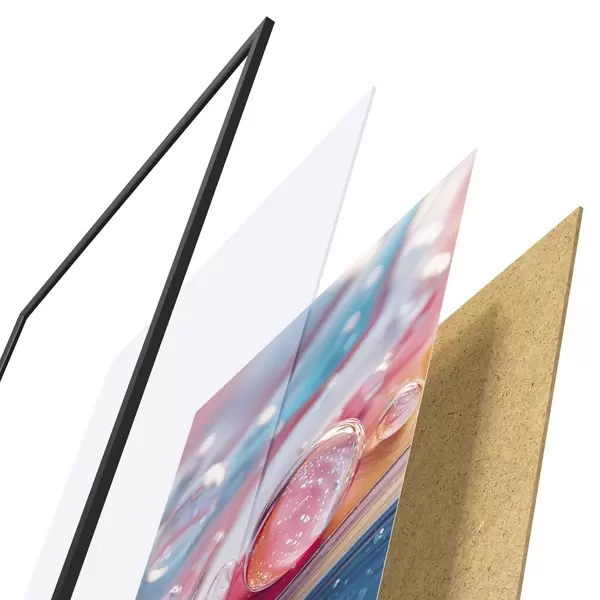 Plakāts sastāv no rāmja, pleksstikla, iespiestā attēla un skaidu plātnes pamatnes. Plakātu var uzreiz piekarināt pie sienas, pateicoties aizmugurē esošajiem stiprinājumiem.