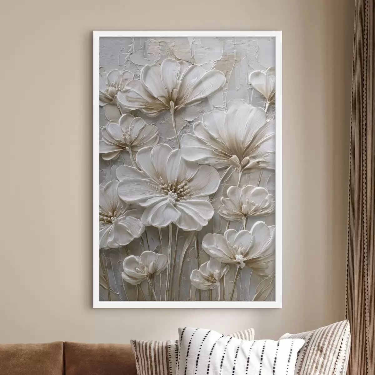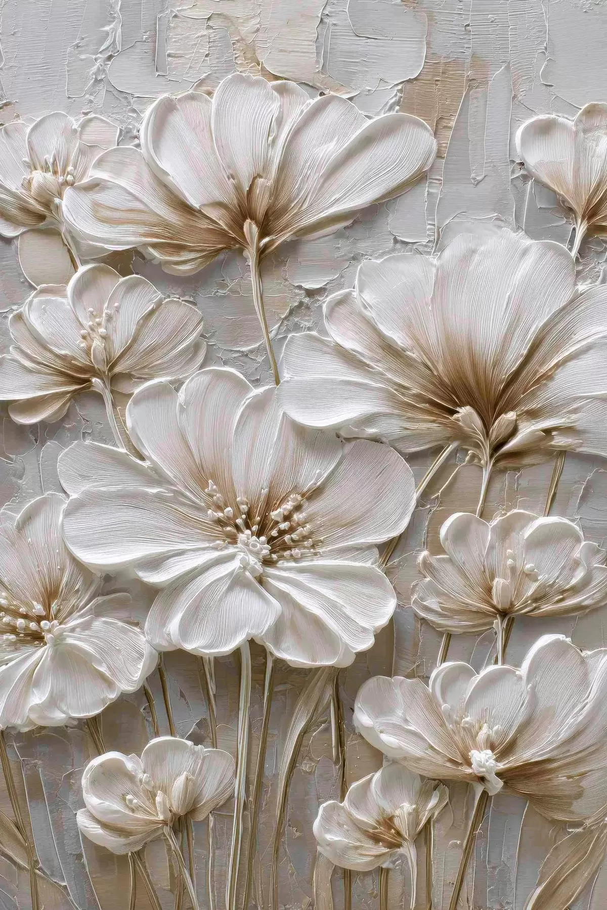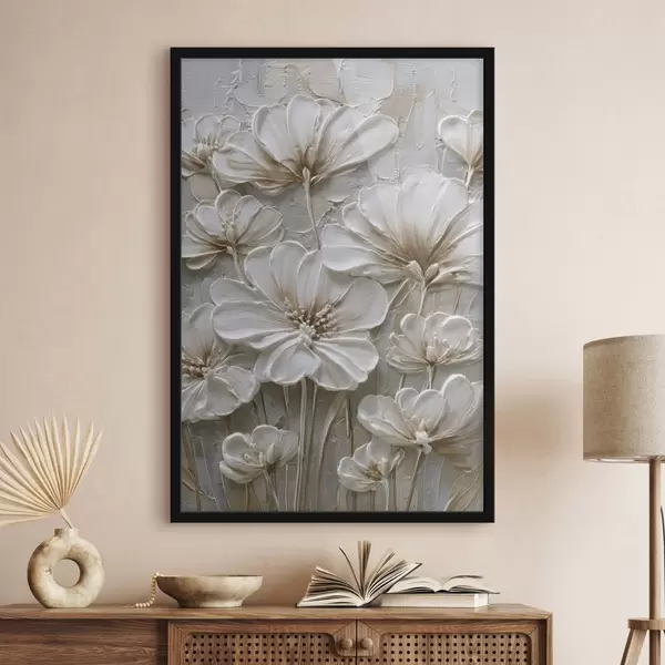 Plakāts krēmkrāsas ziedi ar imitētu impasto stilu f45712