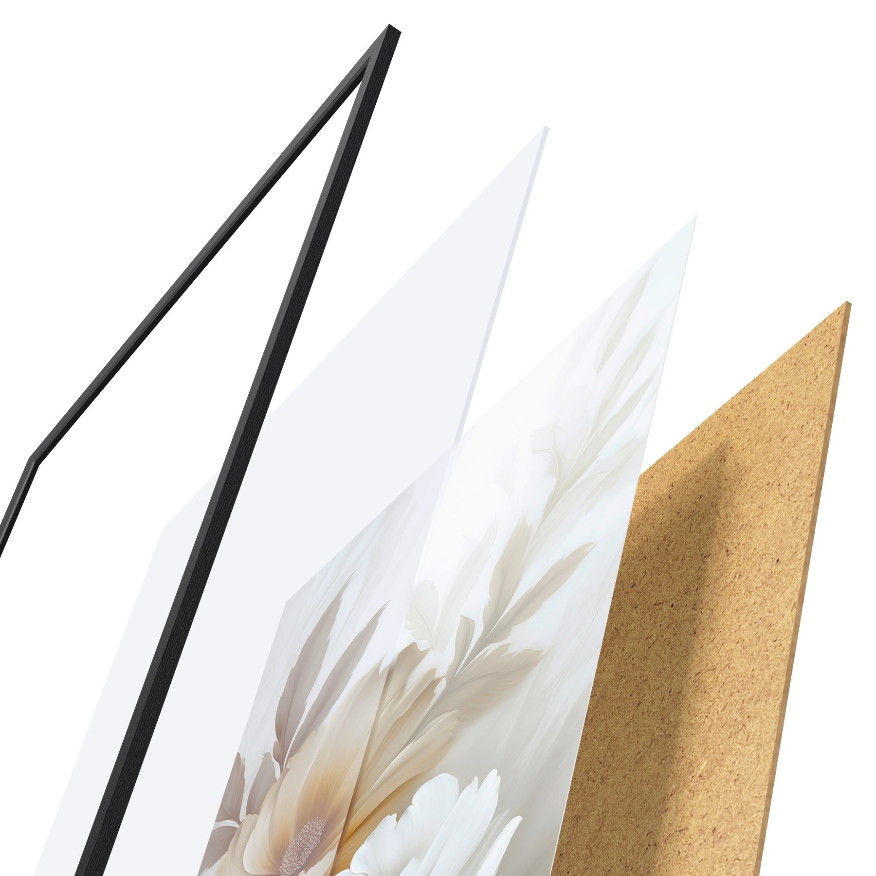 Plakāts sastāv no rāmja, pleksstikla, iespiestā attēla un skaidu plātnes pamatnes. Plakātu var uzreiz piekarināt pie sienas, pateicoties aizmugurē esošajiem stiprinājumiem.
