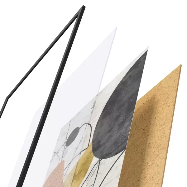 Plakāts sastāv no rāmja, pleksstikla, iespiestā attēla un skaidu plātnes pamatnes. Plakātu var uzreiz piekarināt pie sienas, pateicoties aizmugurē esošajiem stiprinājumiem.