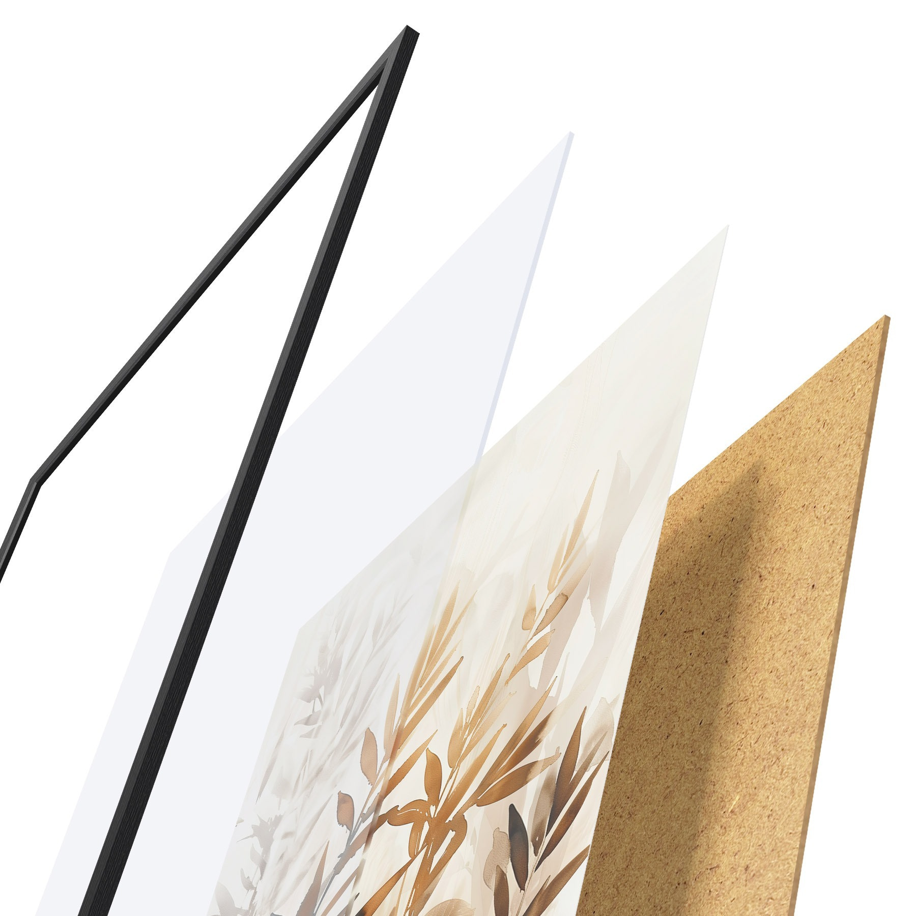 Plakāts sastāv no rāmja, pleksstikla, iespiestā attēla un skaidu plātnes pamatnes. Plakātu var uzreiz piekarināt pie sienas, pateicoties aizmugurē esošajiem stiprinājumiem.