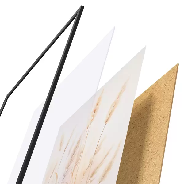 Plakāts sastāv no rāmja, pleksstikla, iespiestā attēla un skaidu plātnes pamatnes. Plakātu var uzreiz piekarināt pie sienas, pateicoties aizmugurē esošajiem stiprinājumiem.