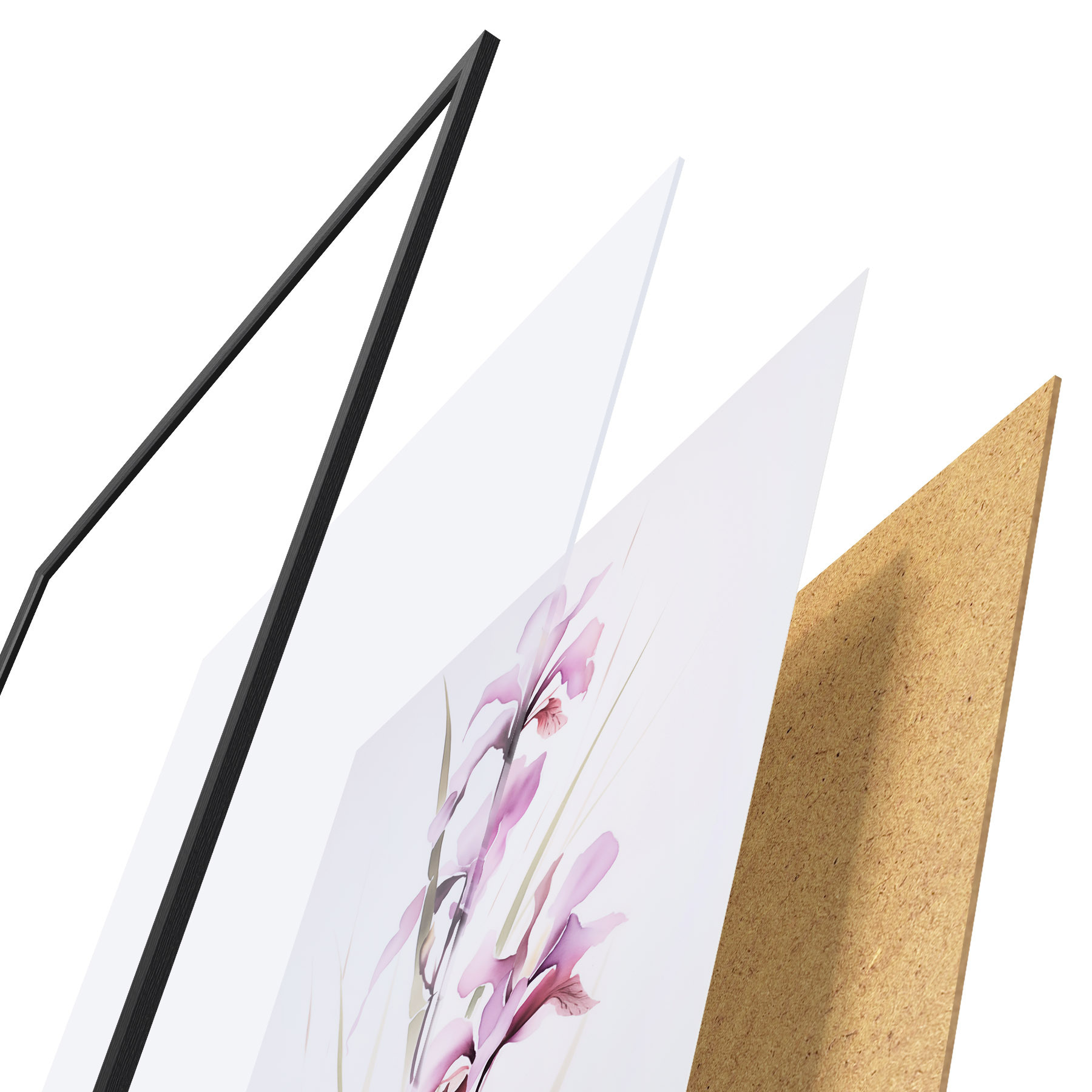 Plakāts sastāv no rāmja, pleksstikla, iespiestā attēla un skaidu plātnes pamatnes. Plakātu var uzreiz piekarināt pie sienas, pateicoties aizmugurē esošajiem stiprinājumiem.