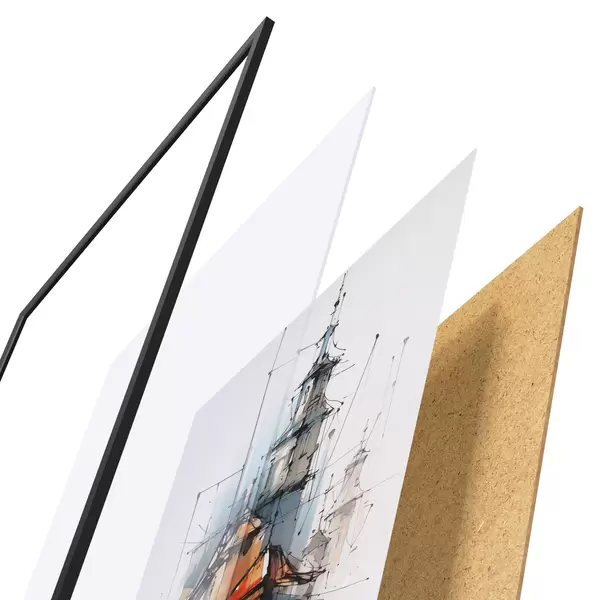 Plakāts sastāv no rāmja, pleksstikla, iespiestā attēla un skaidu plātnes pamatnes. Plakātu var uzreiz piekarināt pie sienas, pateicoties aizmugurē esošajiem stiprinājumiem.