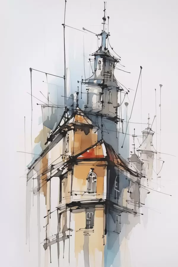 Plakāts Māju imitācijas skice un akvareļgleznojums Nr f45765