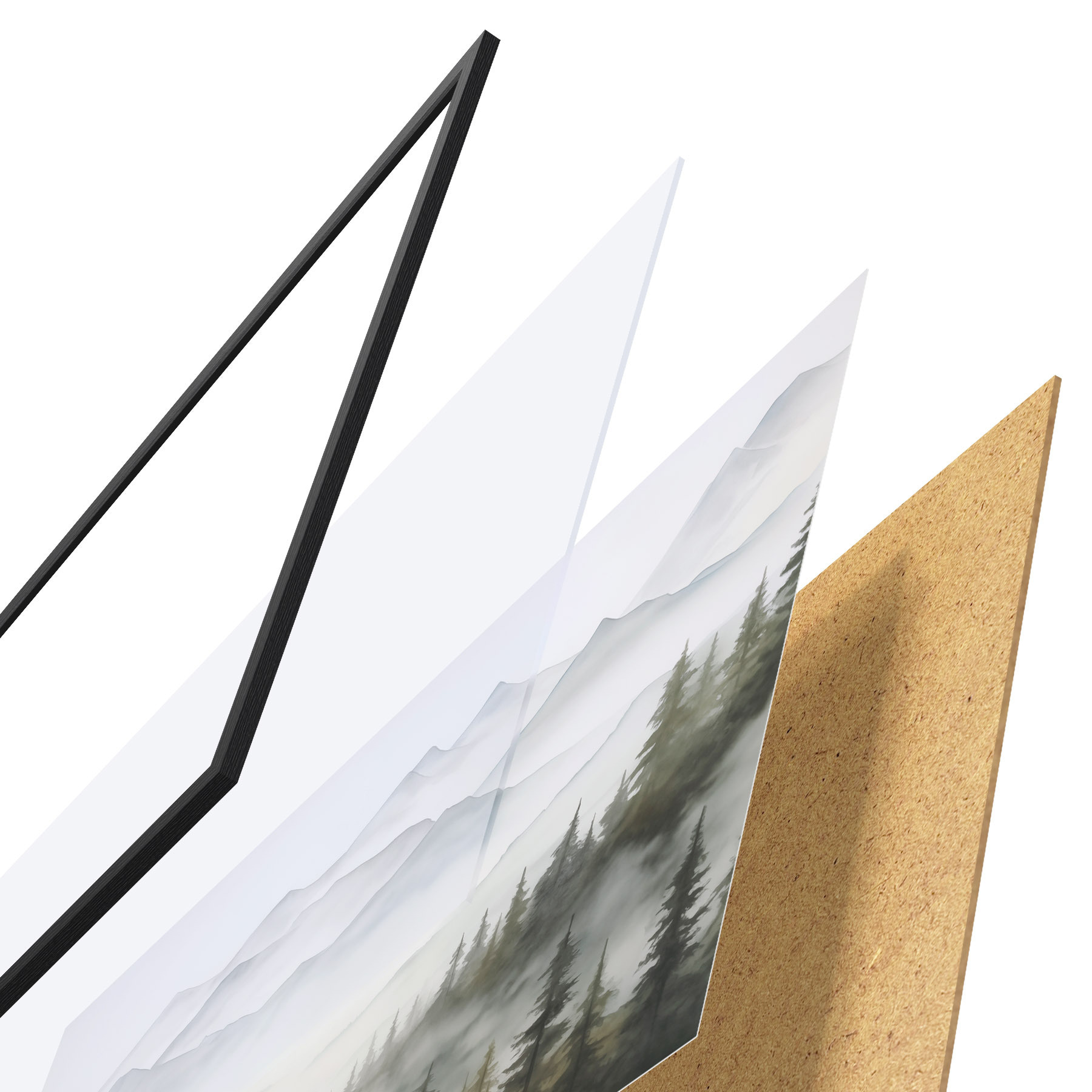 Plakāts sastāv no rāmja, pleksstikla, iespiestā attēla un skaidu plātnes pamatnes. Plakātu var uzreiz piekarināt pie sienas, pateicoties aizmugurē esošajiem stiprinājumiem.
