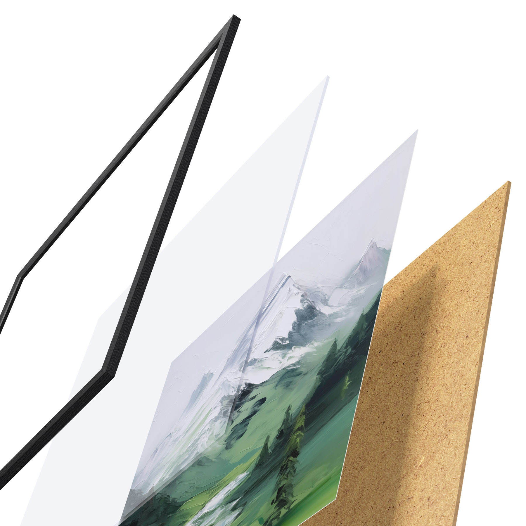 Plakāts sastāv no rāmja, pleksstikla, iespiestā attēla un skaidu plātnes pamatnes. Plakātu var uzreiz piekarināt pie sienas, pateicoties aizmugurē esošajiem stiprinājumiem.