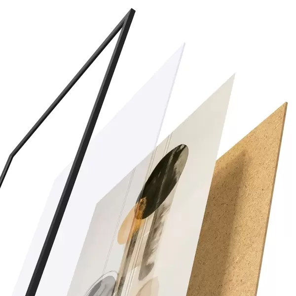 Plakāts sastāv no rāmja, pleksstikla, iespiestā attēla un skaidu plātnes pamatnes. Plakātu var uzreiz piekarināt pie sienas, pateicoties aizmugurē esošajiem stiprinājumiem.