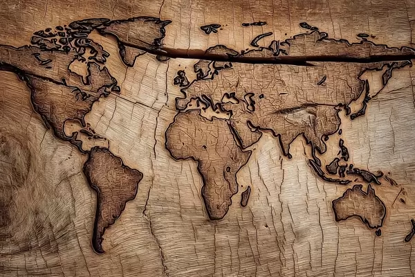 Plakāts Gravēta koka pasaules karte Nr f45805