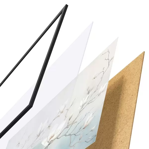 Plakāts sastāv no rāmja, pleksstikla, iespiestā attēla un skaidu plātnes pamatnes. Plakātu var uzreiz piekarināt pie sienas, pateicoties aizmugurē esošajiem stiprinājumiem.