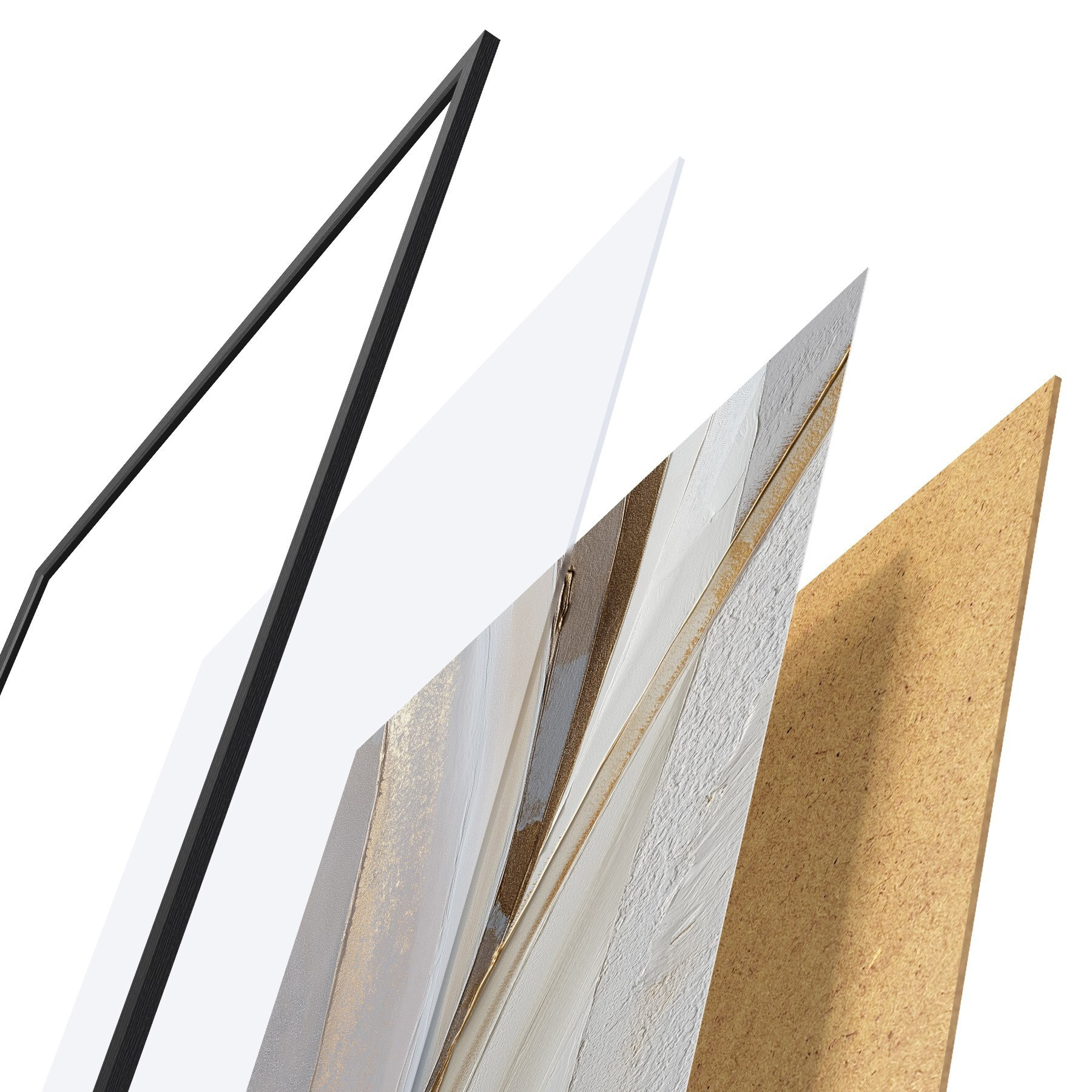Plakāts sastāv no rāmja, pleksstikla, iespiestā attēla un skaidu plātnes pamatnes. Plakātu var uzreiz piekarināt pie sienas, pateicoties aizmugurē esošajiem stiprinājumiem.