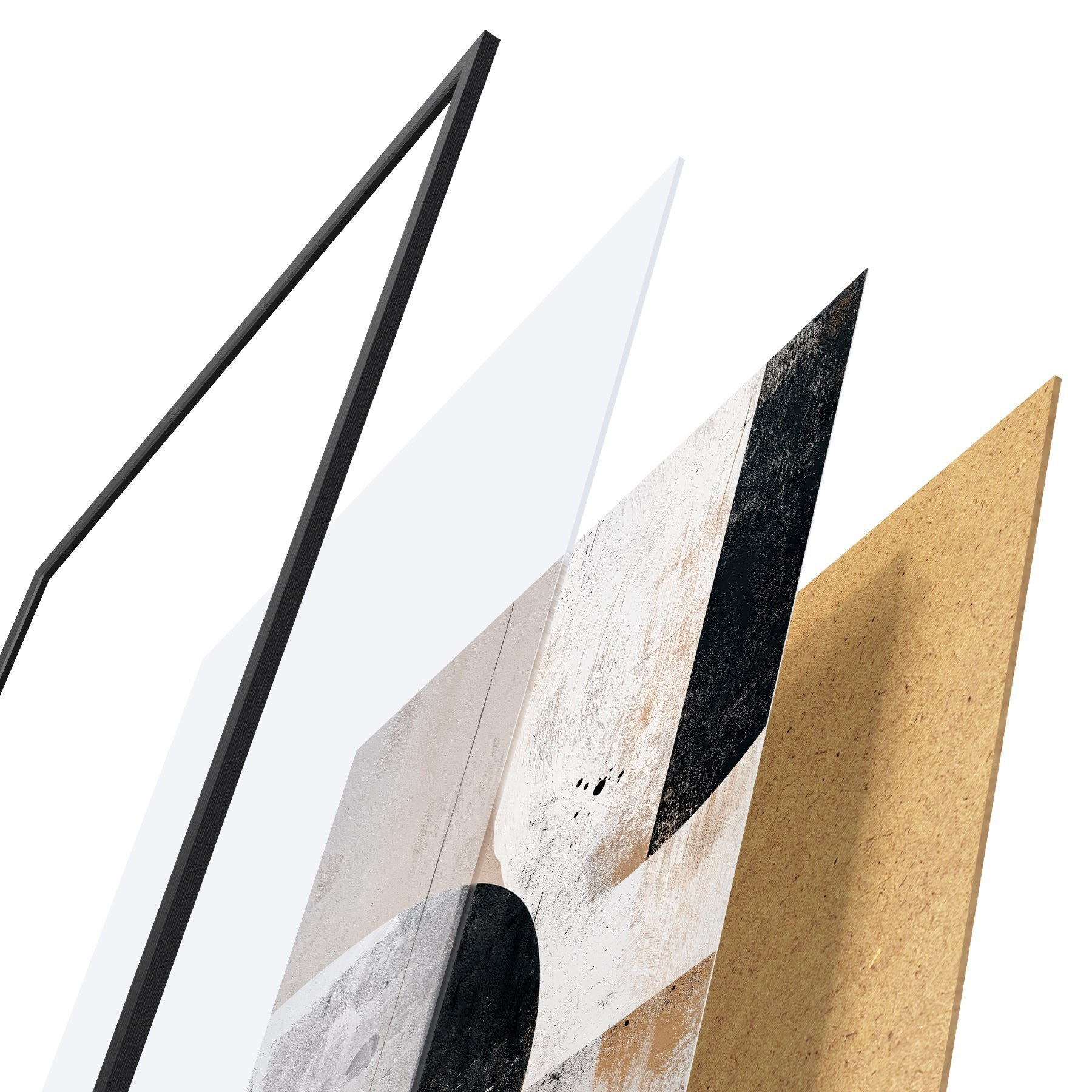 Plakāts sastāv no rāmja, pleksstikla, iespiestā attēla un skaidu plātnes pamatnes. Plakātu var uzreiz piekarināt pie sienas, pateicoties aizmugurē esošajiem stiprinājumiem.