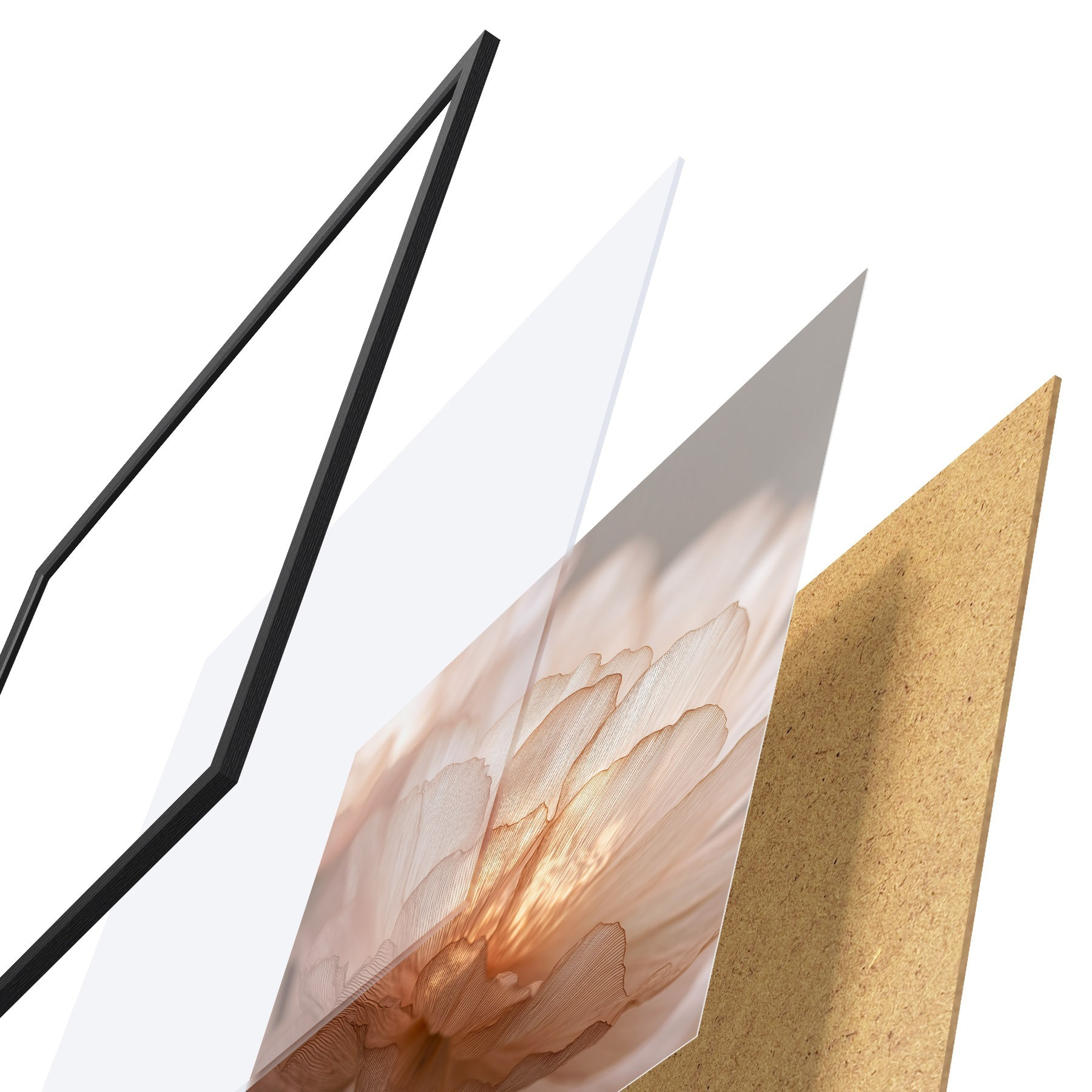 Plakāts sastāv no rāmja, pleksstikla, iespiestā attēla un skaidu plātnes pamatnes. Plakātu var uzreiz piekarināt pie sienas, pateicoties aizmugurē esošajiem stiprinājumiem.
