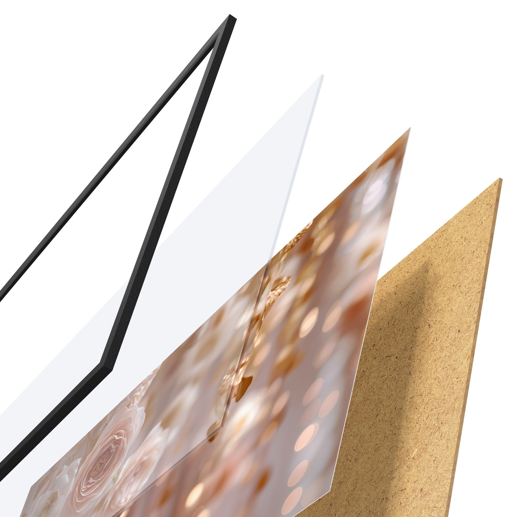 Plakāts sastāv no rāmja, pleksstikla, iespiestā attēla un skaidu plātnes pamatnes. Plakātu var uzreiz piekarināt pie sienas, pateicoties aizmugurē esošajiem stiprinājumiem.