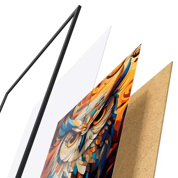 Plakāts sastāv no rāmja, pleksstikla, iespiestā attēla un skaidu plātnes pamatnes. Plakātu var uzreiz piekarināt pie sienas, pateicoties aizmugurē esošajiem stiprinājumiem.