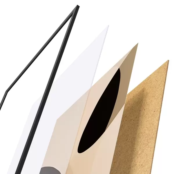 Plakāts sastāv no rāmja, pleksstikla, iespiestā attēla un skaidu plātnes pamatnes. Plakātu var uzreiz piekarināt pie sienas, pateicoties aizmugurē esošajiem stiprinājumiem.